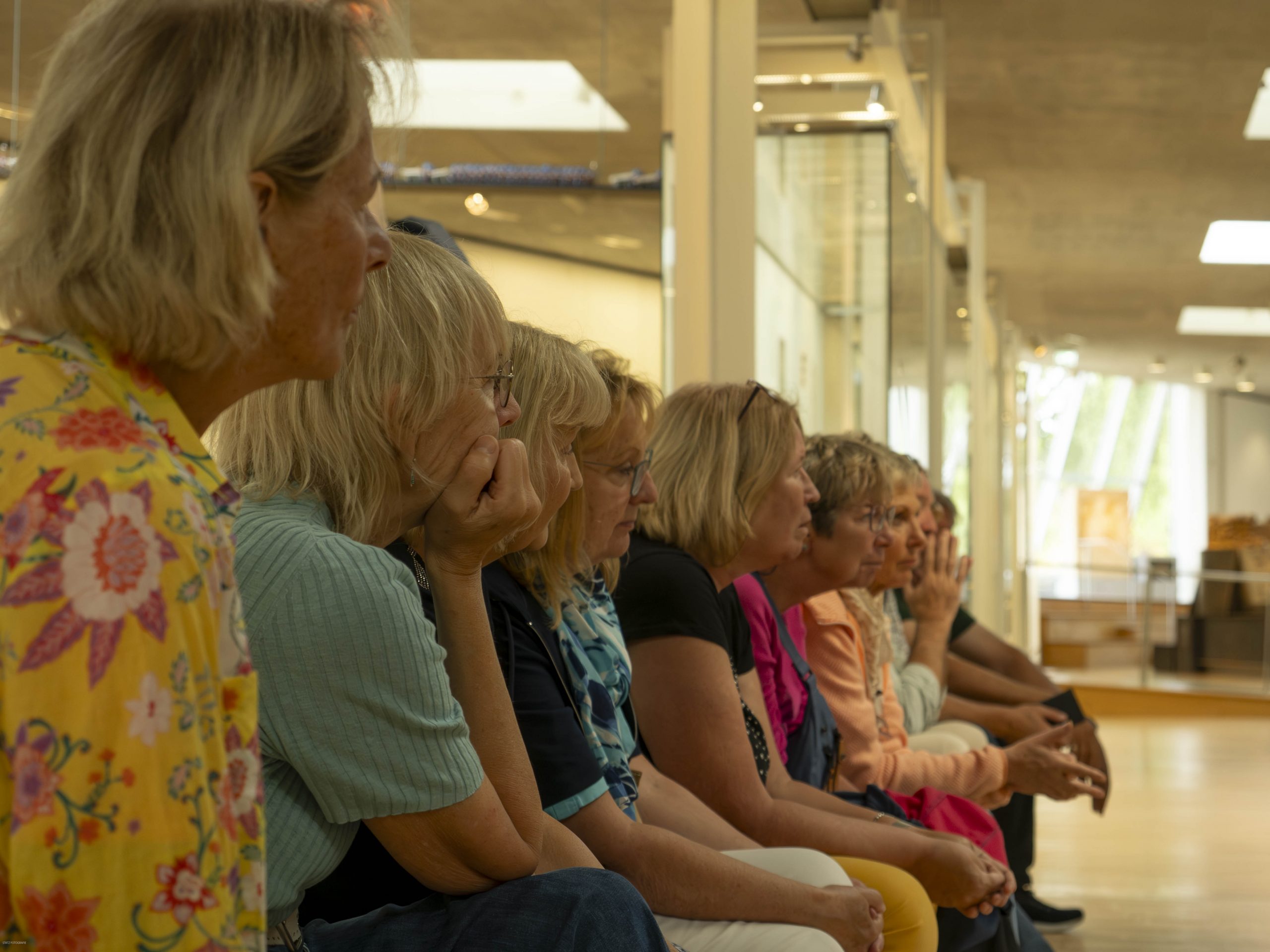 Das Logo von Murisono zeigt auf fünf geschwungenen Notenlinien von links nach rechts zwei Erhöhungszeichen und den Schriftzug "Chor MuriSono". Das C in Chor wird durch einen umgedrehten Bassschlüssel dargestellt. Das M in Muri besteht aus zwei sich zugewandten Achtelnoten, deren Fähnchen und Kopf rot sind. Das S in Sono ist ebenfalls rot.